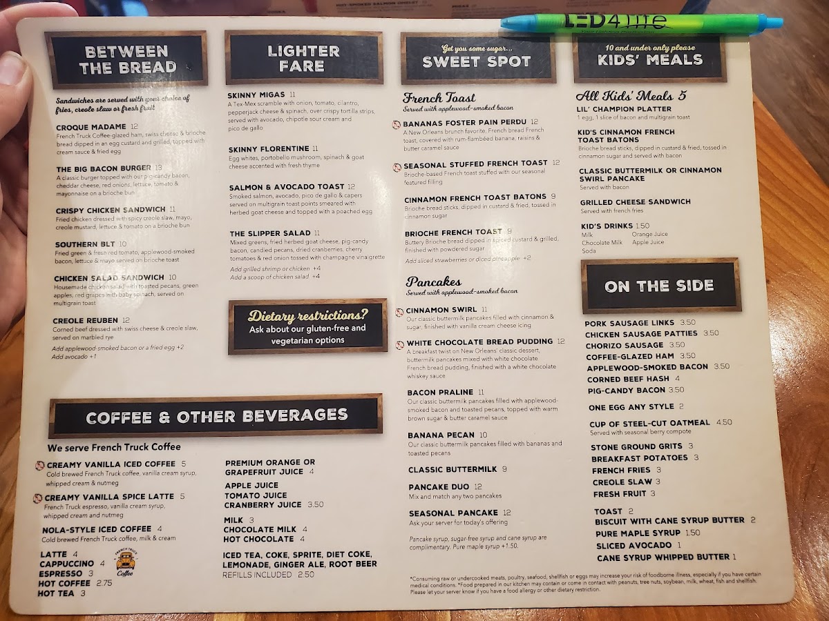 “ Nice and cozy place to get bennies (eggs Benedict), omelets, and pancakes. A huge shoutout to the absolute best pancakes I’ve ever had! Fluffy, golden perfection with just the right touch of sweetness and buttery aroma. If you’re a fellow pancake lover, trust me, you need to try theirs. The applewood smoked bacon, sweet heat chicken, bayou shrimp and cochon that we ordered with our eggs were no slouches either and were excellent in their own right. Tip for my Asian compats: like many sit-down restos here in the US, the soda you order that’s served in a glass is gratis refillable. Enjoy. ”