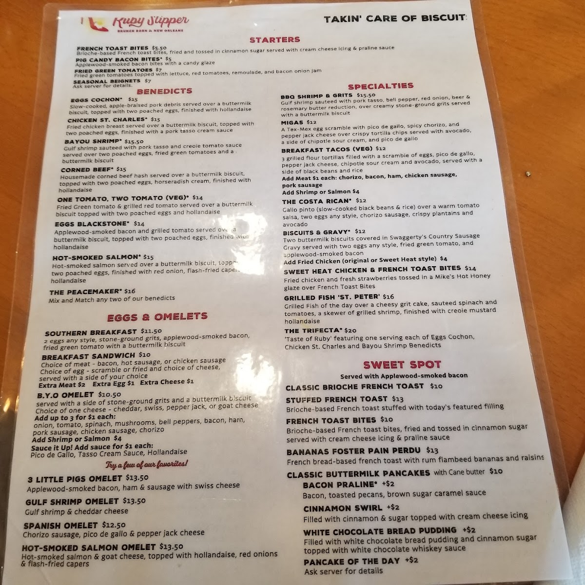 “ An over-the-rainbow, radiant restaurant. As someone who’s usually bored by breakfast, Ruby Slipper was very much a fit. The beignets are indeed a big deal. Strudel-y soft and sweet. Do double down on fried green tomato in your eggs benny. The host, server, and community manager before the meal, during, and after (giving the golden standard on how to navigate The Garden District) ... All of them insured excellence! ”