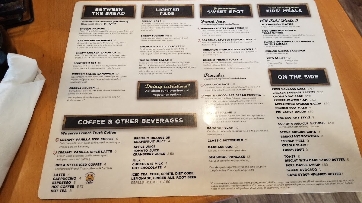 As you step inside, the bright, clean space immediately welcomes you. The decor vibrates with the essence of New Orleans, setting the stage for a delightful culinary experience. But what truly steals the show is the food. Guests rave about the diverse selection, which includes several vegetarian options that prove satisfying even for the most discerning palates. From the mouthwatering fried chicken and French toast bites coated in confectioners' sugar, to the standout white chocolate bread pudding pancakes beloved by regulars, every dish here tells a story of comfort and flavor.